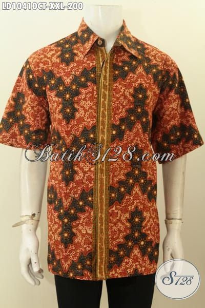 Model Baju Batik Pria Gemuk Lengan Pendek Motif Bagus Tampil Terlihat Berkelas, Hem Batik Cap Tulis Kwalitas Bagus Hanya 200 Ribu [LD10410CT-XXL]