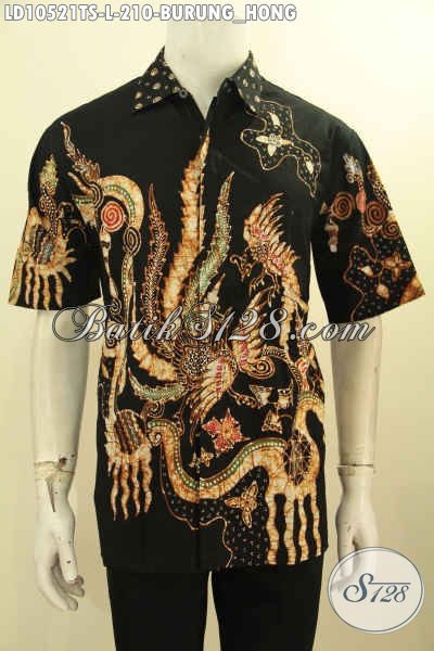 Model Baju Batik Pria Keren Bahan Katun Lengan Pendek Motif Burung Hong, Busana Batik Modis Tulis Soga Harga 210K [LD10521TS-L]