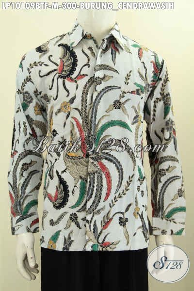 Model Baju Batik Pria Lengan Panjang 2017, Pakaian Batik Elegan Bahan Halus Motif Burung Cendrawasih Daleman Full Furing Proses Kombinasi Tulis Harga 300K [LP10109BTF-M]