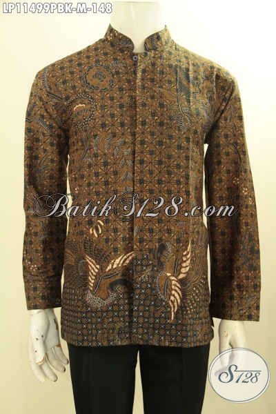 Model Baju Batik Pria Lengan Panjang Halus Motif Klasik Proses Printing Cabut, Busana Batik Elegan Lalki Muda Kerah Shanghai, Pas Banget Untuk Kondangan Dan Acara Resmi [LP11499PBK-M]