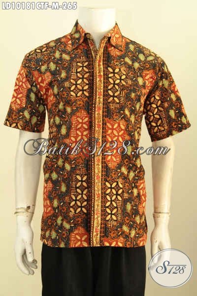 Model Baju Batik Pria Lengan Pendek Bahan Halus Motif Unik Proseas Cap Tulis, Pakaian Batik Kerja Pria Kekinian Full Furing Hanya 265K [LD10181CTF-M]