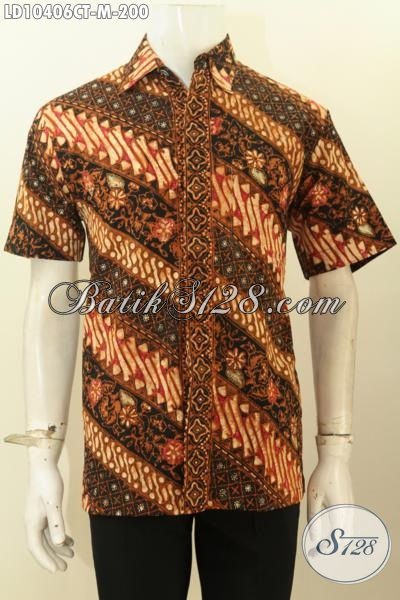 Model Baju Batik Pria Lengan Pendek Motif Parang Klasik, Pakaian Batik Elegan Kwalitas Bagus Bahan Adem, Cocok Untuk Acara Resmi [LD10406CT-M]