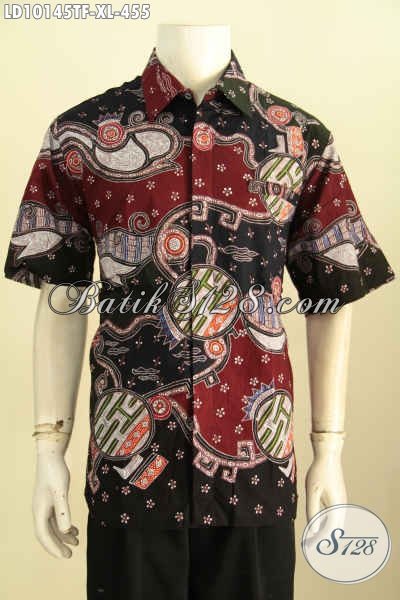 Model Baju Batik Pria Lengan Pendek Motif Unik Tulis Asli, Pakaian Batik Solo Mewah Premium Full Furing, Bikin Penampilan Ganteng Sempurna [LD10145TF-XL]