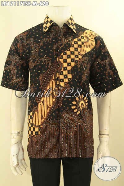 Model Baju Batik Pria Lengan Pendek Tulis Soga Dengan Pewarna Alami, Kemeja Batik Solo Asli Mewah Pakai Furing, Cowok Tampil Gagah Berkelas [LD12117TSF-M]