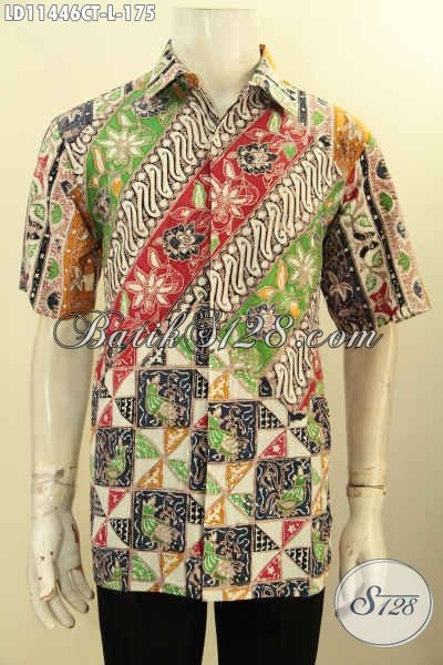 Model Baju Batik Pria Masa Kini, Busana Batik Modis Dengan Motif Modern Klasik Bahan Adem Proses Cap Tulis, Cocok Untuk Kerja Atau Kondangan [LD11446CT-L]