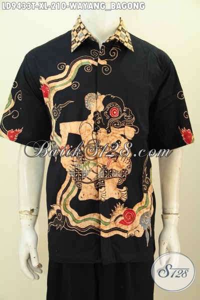 Model Baju Batik Pria Terkini, Hem Batik Kerja Nan Elegan Warna Hitam Motif Wayang Bagong Proses Tulis, Spesial Untuk Lelaki Dewasa [LD9433T-XL]