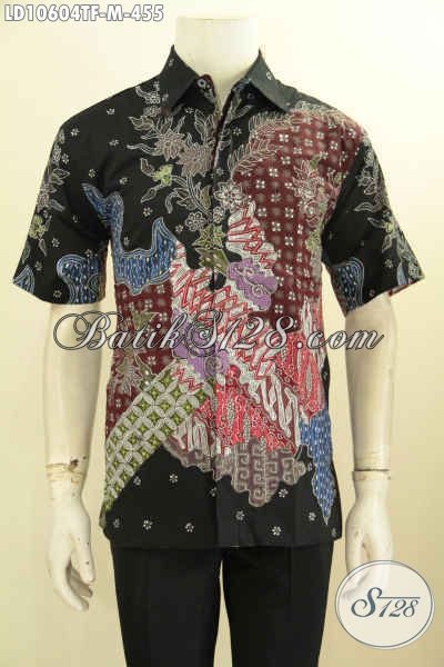 Model Baju Batik Pria Untuk Ke Kantor, Pakaian Batik Solo Jawa Tengah Halus Lengan Pendek Bahan Adem Motif Kekinian Proses Tulis Harga 455 Ribu Full Furing [LD10604TF-M]