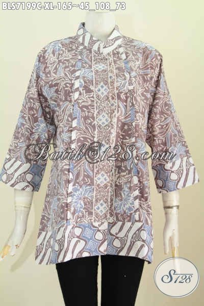 Model Baju Batik Seragam Kerja Wanita Dewasa, Pakaian Blus Kerah Shanghai Plisir Nan Elegan Di Lengkapi Kancing Depan Sampai Bawah Harga 165K Motif Proses Cap [BLS7199C-XL]