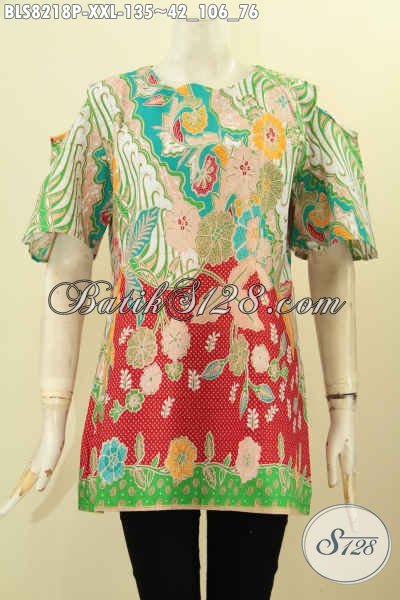 Model Baju Batik Seragam Kerja Wanita Gemuk, Busana Batik Solo Modis Dan Elegan Bahan Adem Proses Printing Desain Lengan Lobang Serta Pakai Kancing Belakang, Penampilan Makin Modis Dan Cantik [BLS8218P-XXL]