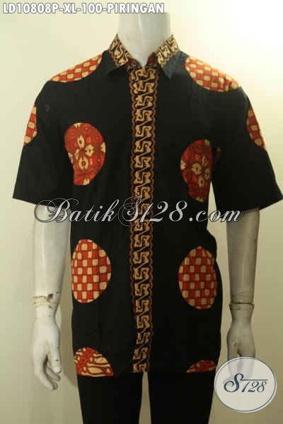 Model Baju Batik Solo Atasan Untuk Pria, Hem Batik Ukuran XL Lengan Pendek Warna Hitam Motif Piringan Bahan Adem Proses Printing, Pas Untuk Kerja Dan Jalan-Jalan [LD10808P-XL]