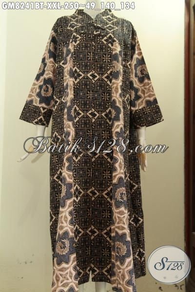 Model Baju Batik Solo Istimewa, Produk Pakaian Batik Gamis Untuk Wanita Berhijab, Long Dress Batik Istimewa Desain Krah V, Wanita Gemuk Terlihat Mempesona [GM8241BT-XXL]