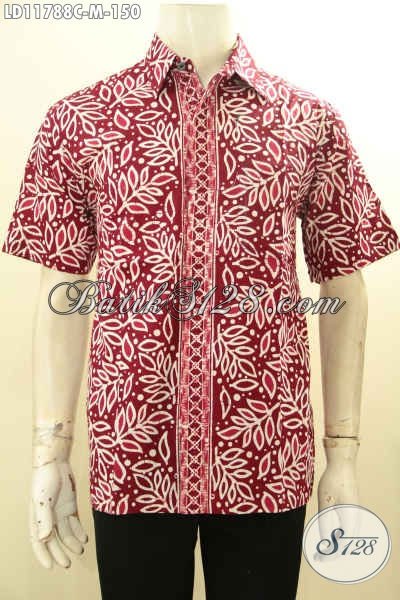 Model Baju Batik Solo Lengan Pendek Warna Merah Nan Istimewa, Busana Batik Modis Motif Unik Kwalitas Istimewa Proses Cap, Tampil Gagah Dan Tampan [LD11788C-M]
