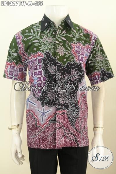 Model Baju Batik Solo Pria Muda Lengan Pendek Full Furing, Pakaian Batik Modis Motif Keren Tulis Asli Harga 455K [LD10271TF-M]