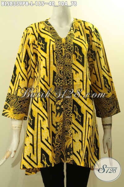 Model Baju Batik Solo Untuk Wanita Kantoran, Blus Batik Kartini Kancing Depan Motif Keren Printing Cabut Hanya 155K [BLS8339PB-L]