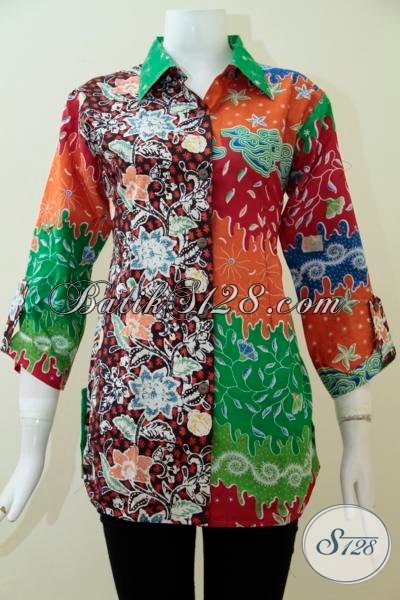 Model Baju Batik Terbaru Untuk Perempuan Muda Dan Dewasa, Blus Batik Kombinasi Motif Dan Warna Dengan Desain Mewah Untuk Tampil Berkelas [BLS1916CP-L]