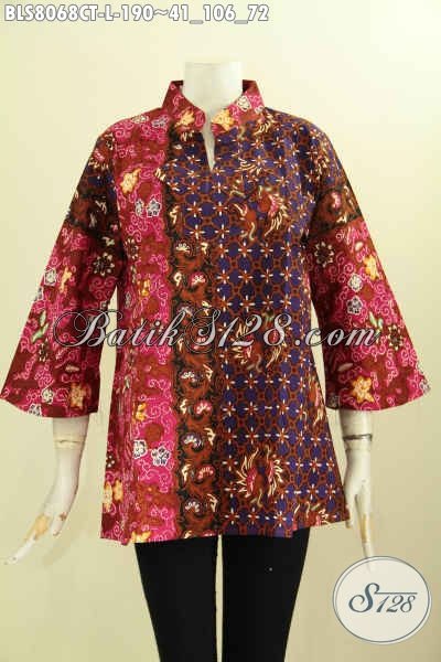 Model Baju Batik Trend Masa Kini, Busana Batik Blus Wanita Krah Shanghai Yang Modis Buat Kerja Dan Acara Resmi Harga 190K [BLS8068CT-L]