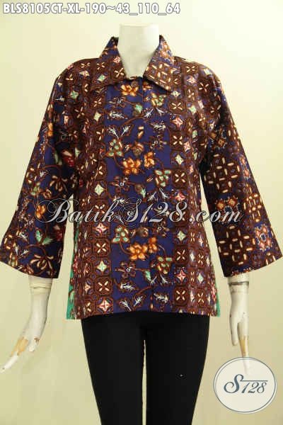 Model Baju Batik Untuk Kerja Wanita Dewasa, Hadir Dengan Krah Lancip Warna Berkelas Berpadu Motif Mewah Cap Tulis Harga 190K, Asli Buatan Solo [BLS8105CT-XL]
