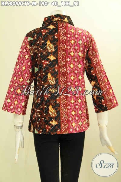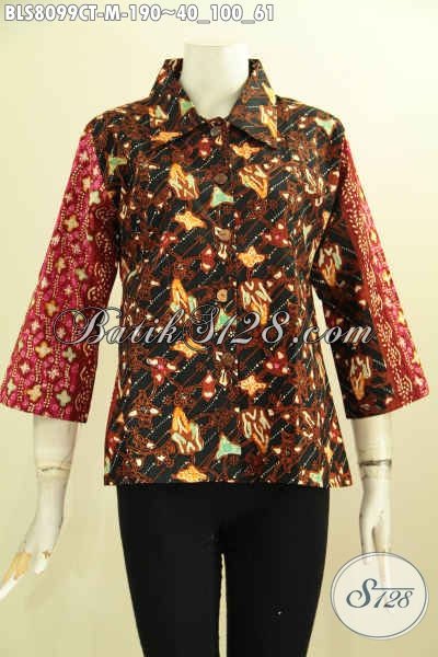 Model Baju Batik Untuk Wanita Muda, Blus Krah Lancip Nan Modis Dengan Motif Kombinasi Terlihat Mewah Dan Berkelas [BLS8099CT-M]