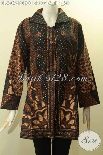 Model Baju Batik Wanita Berkrah, Pakaian Batik Solo Elegan Motif Sinaran Spesial Untuk Wanita Gemuk, Bahan Adem Proses Printing Cabut Penampilan Lebih Istimewa [BLS8372PB-XXL]