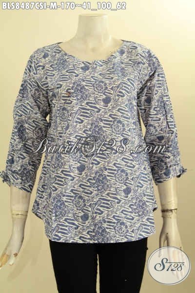 Model Baju Batik Wanita Blus Atasan Kancing Belakang Dan Bertali Dibagian Lengan, Cocok Untuk Kerja Dan Jalan-Jalan [BLS8487CSI-M]