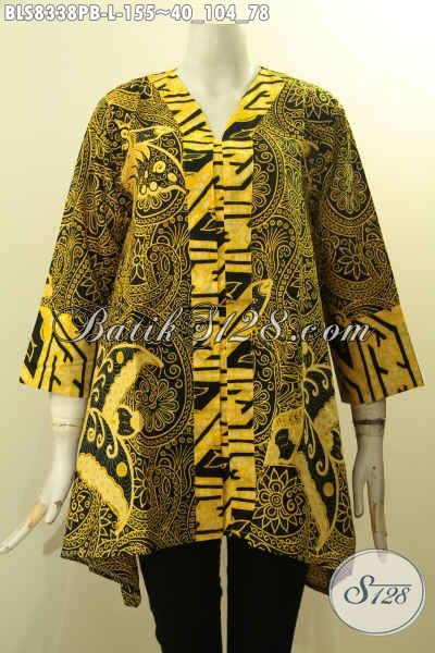Model Baju Batik Wanita Elegan Berkelas, Blus Batik Kartini Kancing Depan Motif Mewah Proses Printing Cabut, Tampil Terlihat Istimewa [BLS8338PB-L]