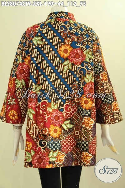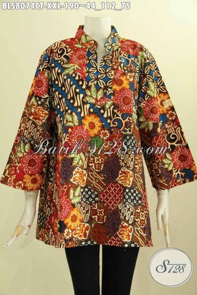 Model Baju Batik Wanita Gemuk, Batik Blus Solo Elegan Berkelas Krah Shanghai Motif Klasik Cap Tulis, Penampilan Anggun Dan Trendy [BLS8074CT-XXL]