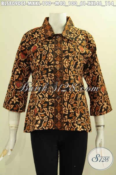 Model Baju Batik Wanita Kantoran, Aneka Blus Batik Model Krah Lancip Bahan Halus Motif Bagus Cap Tulis, Di Jual Online 190 Ribu [BLS8090CT-M , XXL]