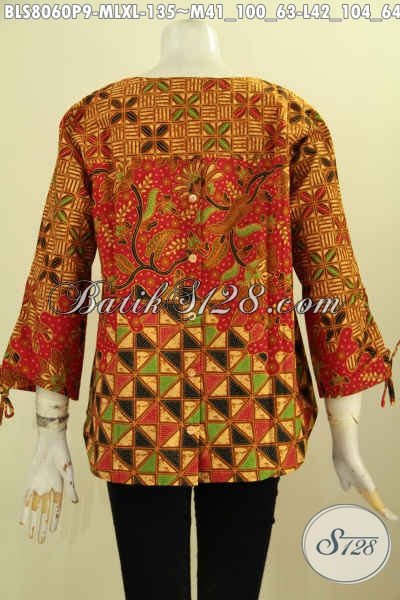Model Baju Batik Wanita Karir 2019, Hadir Dengan Lengan Bertali Dan Ujung Pakai Lubang, Blus Batik Klasik Printing Tanpa Krah, Tampil Modern Dan Elegan [BLS8060P-L]