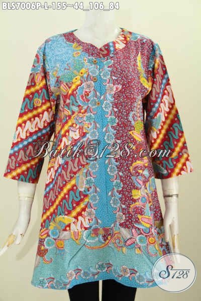 Model Baju Batik Wanita Kerja Modern 2017, Blus Kerah Paspol Modis Motif Bagus Proses Printing, Tampil Lebih Percaya Diri [BLS7006P-L]