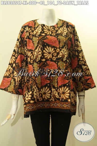Model Baju Batik Wanita Lengan Tumpuk, Batik Blus Wanita Dewasa Motif Daun Talas Nan Elegan Proses Cap Tulis Di Lengkapi Kancing Belakang Harga 200K [BLS8355CT-XL]
