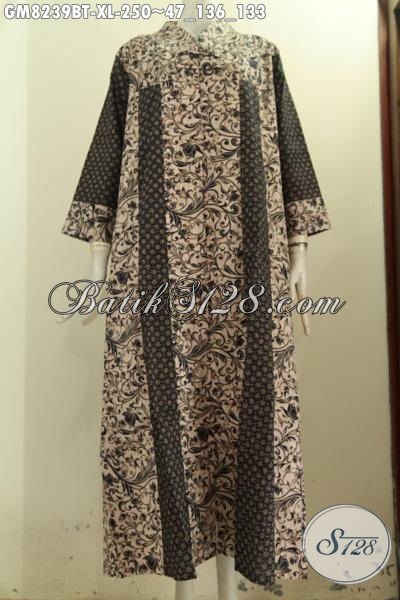 Model Baju Batik Wanita Masa Kini, Produk Terbaru Gamis Batik Krah V Kancing Depan Bahan Adem Motif Bagus Kombinasi Tulis Hanya 250K [GM8239BT-XL]