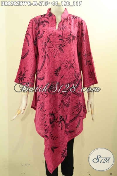 Model Baju Batik Wanita Motif Unik Kombinasi Tulis, Busana Batik Trendy Warna Merah Jambu Bahan Paris Kwalitas Istimewa Harga 215 Ribu Saja [DR8282BTPR-M]
