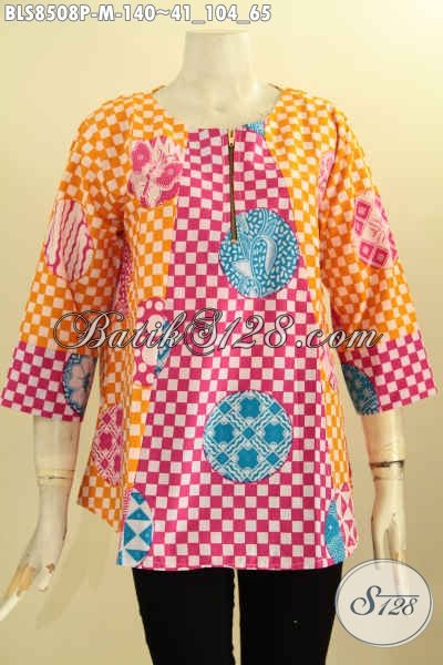 Model Baju Batik Wanita Muda Lengan 7/8, Blus Batik Solo Keren Warna Cerah Dengan Kancing Depan Kwalitas Bagus Proses Printing, Bikin Penampilan Terlihat Segar [BLS8508P-M]