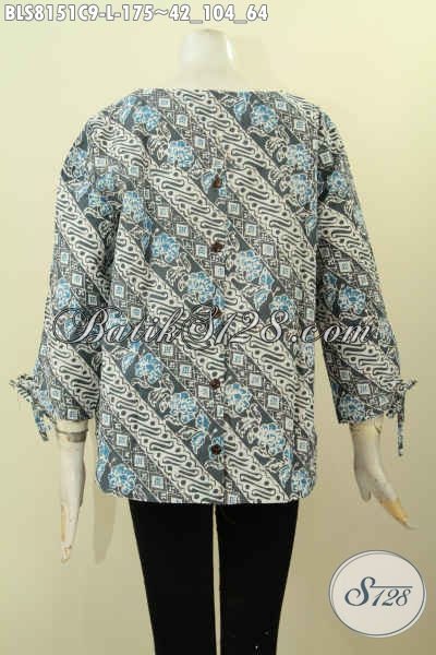 Model Baju Batik Wanita, Pakaian Atasan Cewek Desain Tanpa Krah Dengan Kancing Belakang Bahan Halus Motif Terkini Proses Cap, Di Jual Online 175 Ribu Saja [BLS8151C-L]