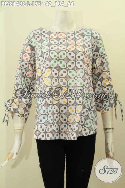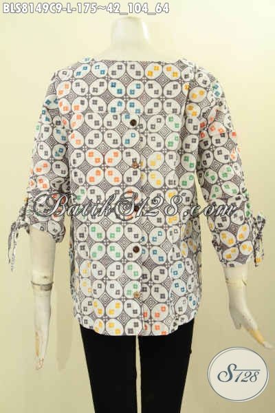 Model Baju Batik Wanita Terbaru Dengan Lengan Bertali Dan Berlubang Di Ujung, Blus Tanpa Krah Motif Keren Proses Cap Hanya 100 Ribuan [BLS8149C-L]