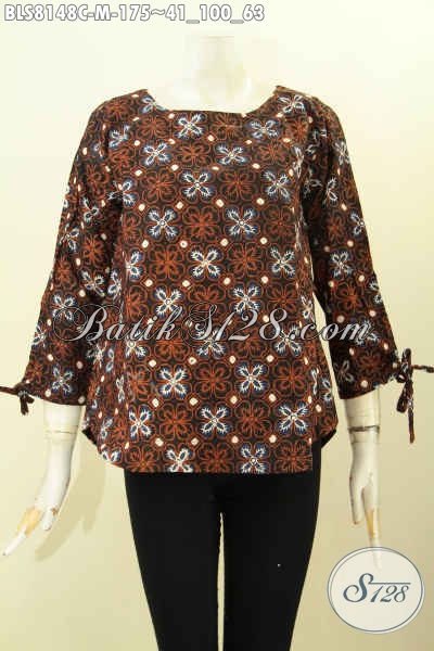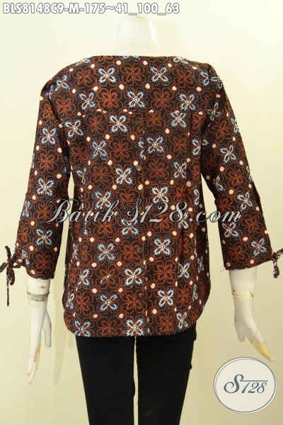 Model Baju Batik Wanita Terkini, Blus Kerja Kwalitas Istimewa Bahan Adem Desain Kancing Belakang Dan Tanpa Krah Harga 175K [BLS8148C-M]