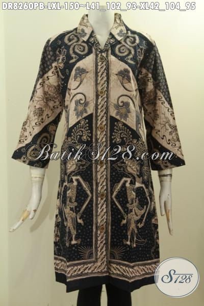 Model Baju Batik Wanita Untuk Tampil Elegan Dan Berkelas, Dress Batik Mewah Proses Printing Dengan Krah Langsung Harga 150K, Cocok Buat Kerja [DR8260PB-XL]