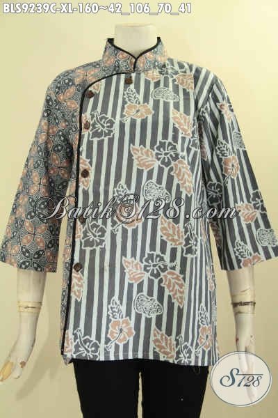 Model Baju Blouse Batik Wanita Terkini, Hadir Dengan Kerah Shanghai Lengan 3/4 Bahan Halus Motif Trendy Kombinasi Plesir Polos [BLS9239C-XL]