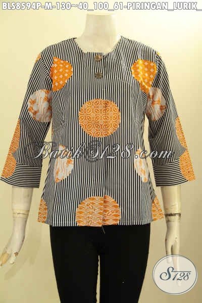 Model Baju Kemeja Batik Blouse Tanpa Krah Motif Lurik Piringan Hitam, Pakaian Batik Modis Yang Cocok Buat Kerja Dan Jalan-Jalan Proses Printing Di Lengkapi Kancing Depan Harga 130K [BLS8594P-M]