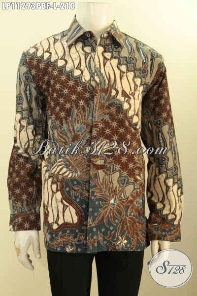 Model Baju Kemeja Batik Pria Lengan Panjang Motif Klasik Printing Cabut, Busana Batik Solo Istimewa Bahan Adem Daleman Lapisan Furing, Bikin Pria Terlihat Tampan Dan Gagah [LP11293PBF-L]