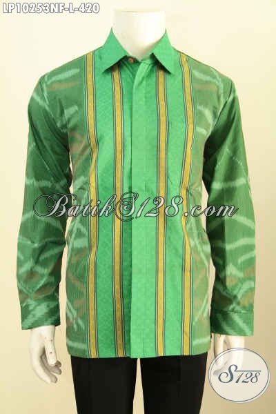 Model Baju Tenun Elegan Lengan Panjang Cocok Untuk Eksekutif Muda Dan Pria Sukses, Hadir Dengan Warna Hijau Muda Daleman Full Furing Harga 420K [LP10253NF-L]