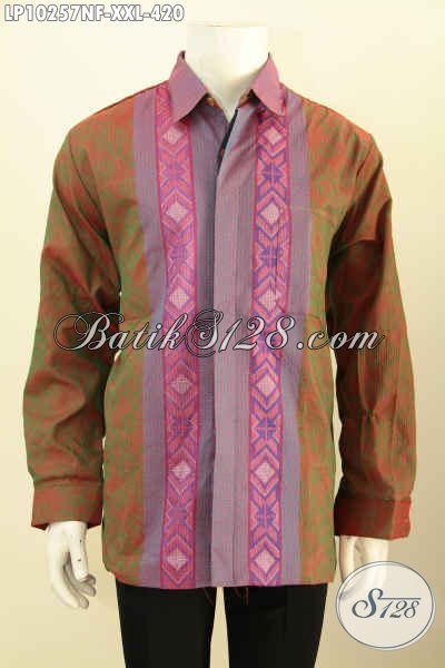 Model Baju Tenun Istimewa Untuk Pria Gemuk, Busana Tenun Big Size Warna Elegan Dan Mewah Berpadu Motif Terbaru, Penampilan Makin Gagah [LP10257NF-XXL]
