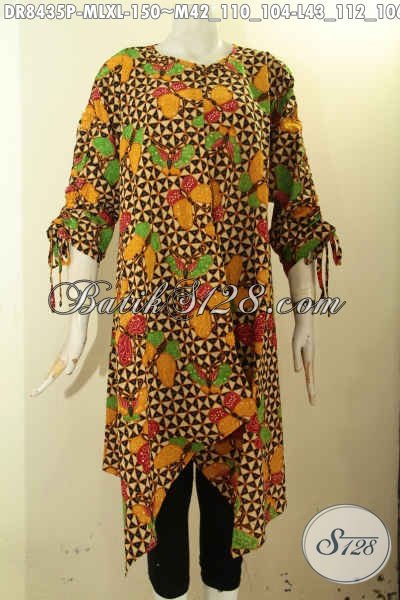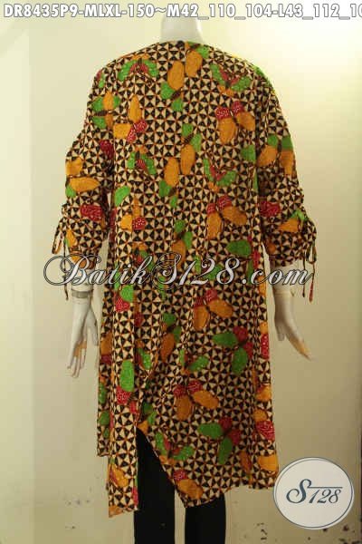 Model Batik Dress Modis Dengan Lipat Depan, Aneka Busana Batik Wanita Keren Bahan Halus Motif Unik Pakai Kancing Belakang Dan Lengan Bertali, Penampilan Makin Gaya [DR8435P-M , L , XL]
