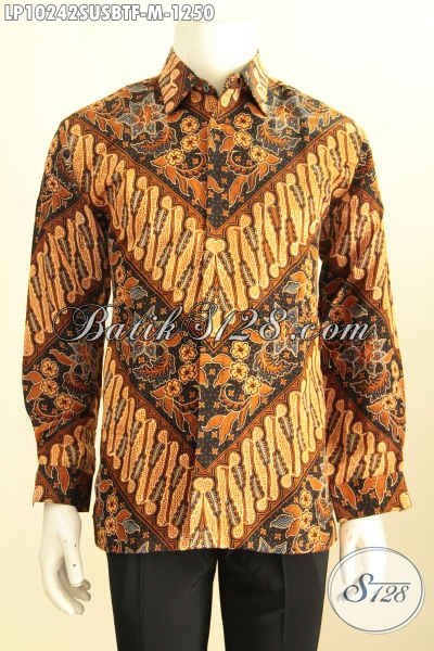 Model Bau Batik Lengan Panjang Pria Terbaru, Kemeja Batik Klasik Bahan Sutra Mewah Full Furing, Cocook Untuk Pria Pejabat Dan Eksekutif [LP10242SUSBTF-M]