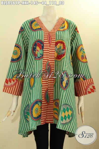 Model Busana Batik Elegan Dengan Motif Modern, Pakaian Batik Blouse Jumbo Wanita Gemuk Kancing Depan Proses Printing Bahan Adem Nyaman Di Pakai Harian Harga 145K [BLS8561P-XXL]