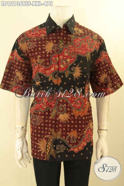 Model Busana Batik Pria Gemuk Lengan Pendek Mewah, Hem Batik Halus Yang Nyaman Di Pakai Dengan Daleman Full Furing Motif Terkini Jenis Tulis Lasem Hanya 475K [LD12136TSF-XXL]