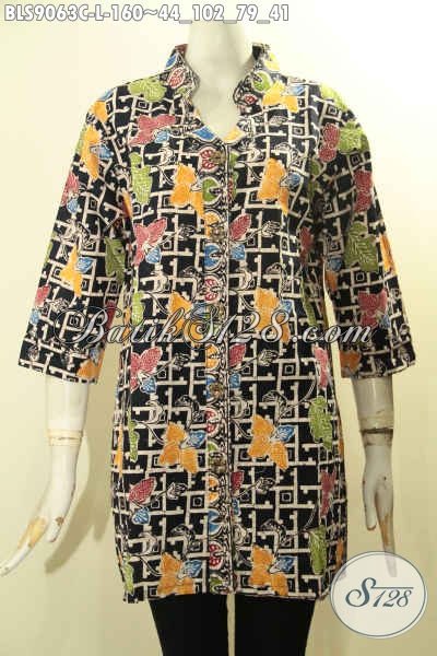 Model Busana Batik Unik Motif Bunga Dengan Kombinasi Warna Trendy Proses Cap, Blouse Batik Perempuan Model Lengan 3/4 Kancing Depan, Cocok Banget Buat Hangout [BLS9063C-L]