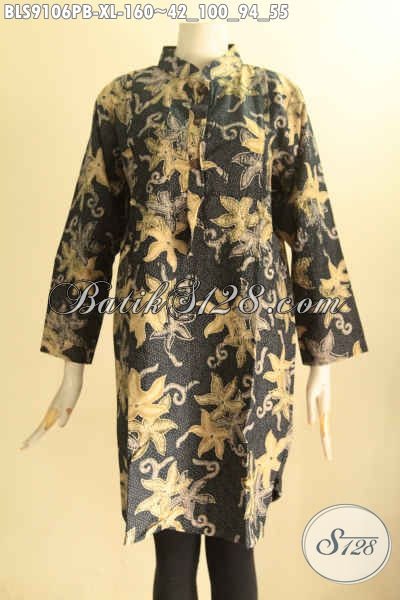 Model Busana Batik Wanita Masa Kini, Pakaian Batik Blouse Solo Asli Lengan 7/8 Kerah Shanghai Bahan Halus Di Lengkapi Kancing Depan Dan Kantong Dalam Hanya 100 Ribuan Saja [BLS9106PB-XL]