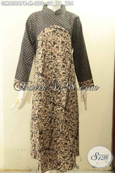 Model Busana Gamis Wanita Size M, Koleksi Batik Abaya 2019 Desain Krah Shanghai Resleting Belakang Bahan Adem Motif Klasik Printing Cabut Dengan Dual Warna, Bikin Penampilan Mempesona [GM8386PB-M]