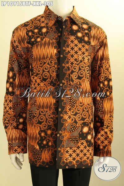 Model Kemeja Batik Jumbo Lengan Panjang Istimewa, Busana Batik ELegan Full Furing Motif Klasik Proses Kombinasi Tulis Yang Membuat Pria Gemuk Terlihat Mempesona [LP10915BTF-XXL]